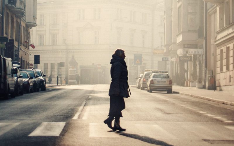 A person in the middle of the streets on Poznan surrounded by old buildings captured in Poland