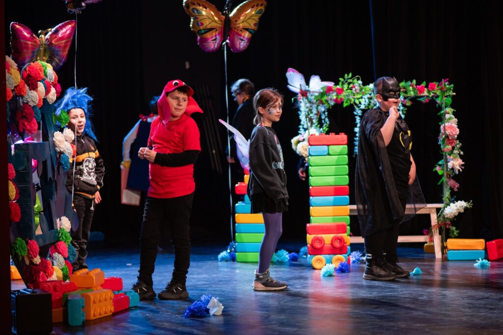 Począwszy od października 2023 r. dzieci, czasami wraz z rodzicami, spotykały się na zajęciach teatroterapii, które stanowią szczególną formę aktywności i ekspresji twórczej dla uczniów. Niekiedy spotkania były bardzo wymagające, gdyż aura i sezon jesienny nie sprzyjał frekwencji na zajęciach. Mimo wszystko część uczestników regularnie i wytrwale kreowała swoją sztukę.